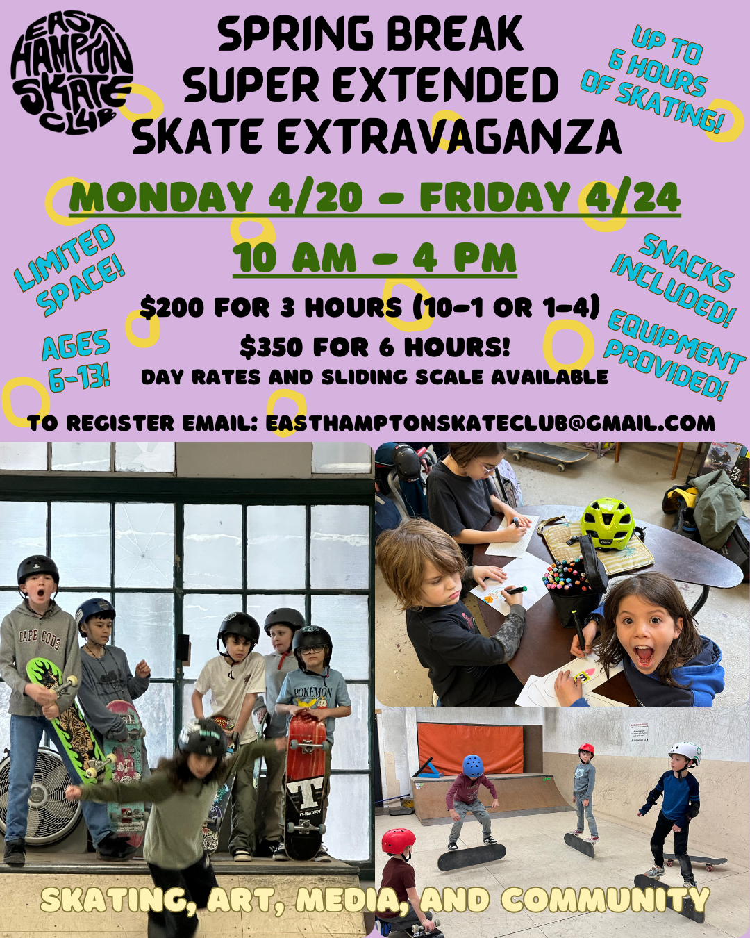 Drop in with us at Open Skate! First come, first serve for rental boards and helmets. Open Skate is open to all skateboarders, rollerbladers, and rollerskaters. Every session is a safe space for anyone and everyone.